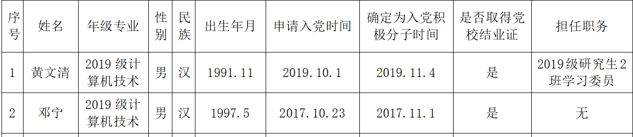 av在线 党委研究生五党支部关于确定黄文清等2名同志为发展对象的公示经av在线 研究生五党支部培养考察,在听取培养联系人、党员和群众意见的基础上,经支委会讨论,确定黄文清等2同志为发展对象。现根据学...