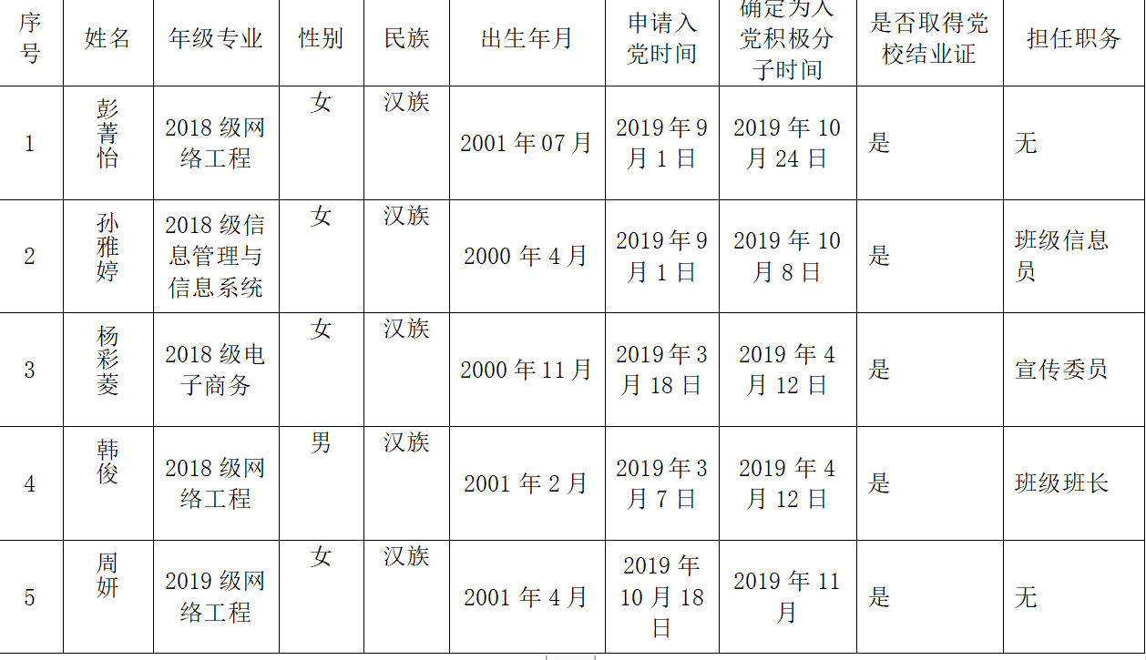 av在线 党委 网络工程专业本科党支部关于确定彭菁怡等5名同志为发展对象的公示 经av在线 网络工程专业本科党支部培养考察,在听取培养联系人、党员和群众意见的基础上,经支部委员会讨论同意,报...