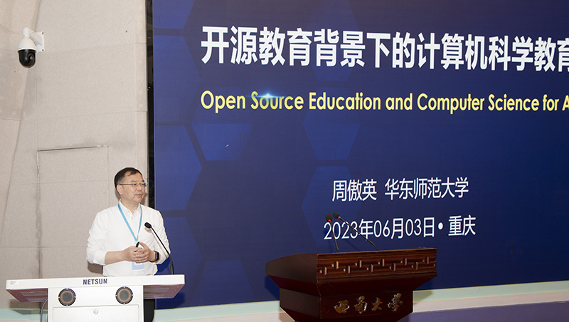 主题报告阶段,华东师范大学副校长周傲英教授,教育部高等学校软件工程专业教学指导委员会副主任委员、示范性软件av在线