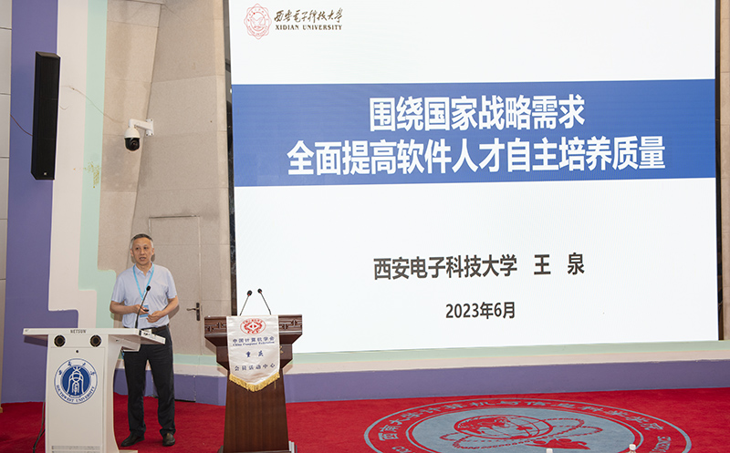 王泉教授以“围绕国家战略需求全面提高软件人才自主培养质量”为报告主题,分析了我国软件人才培养的现状和存在的问题,梳理了国家相关激励政策。从数字化转型和产教融合、科教融合的角度,给出了提高软件人才自主培养质量的思考和实践。