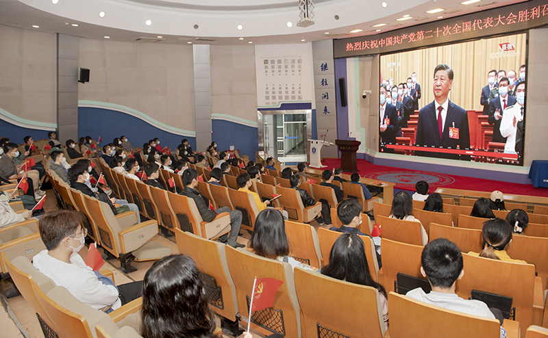 党委组织全体党委理论学习中心组成员、党员师生代表集中收看中国共产党第二十次全国代表大会开幕会,认真聆听习近平总书记代表第十九届中央委员会向大会作的工作报告。