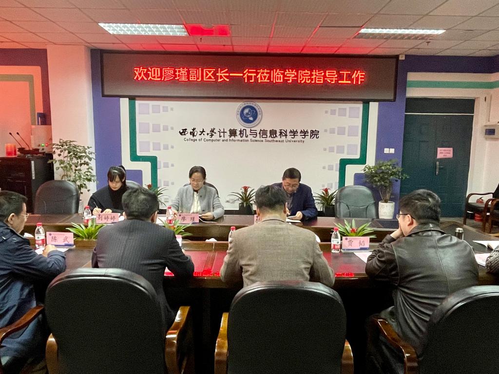 建设的推进情况,希望能与北碚区加强校地校企合作,发挥服务地方经济的作用。贾韬主任介绍了学校信息化、信息安全和机房建设的基本情况,并结合av在线