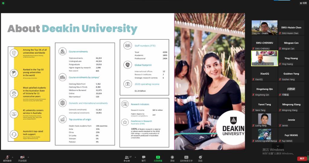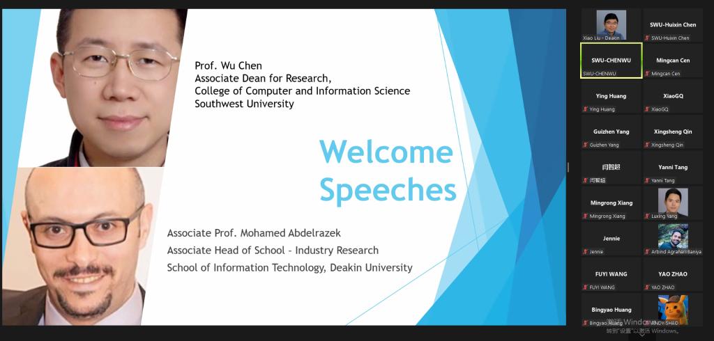 副院长Mohamed Abdelrazek副教授、副院长Xiao Liu副教授出席了会议。双方共有5位教师受邀担任报告嘉宾,9位联合培养博士生作了研究汇报,近百名师生通过线上方式参与了此次研讨会。