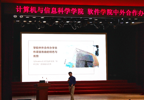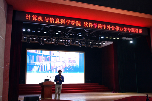 大礼堂为软件工程、自动化、计算机科学与技术三个中外合作办学专业的同学,开展了题为“浅议新时期中外合作办学”的专题讲座,学生家长通过线上直播同步参加会议。