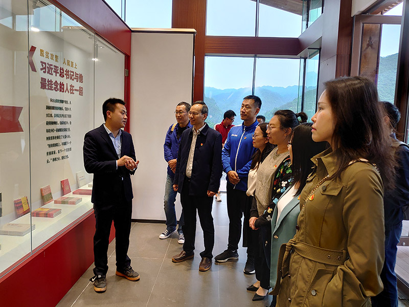 在华溪村院坝会议地址,一行人实地拜访了老党员马培清,听取了当地干部对习近平总书记到华溪村视察相关情况的介绍,集中学习领会了习近平总书记视察重庆重要讲话精神,深切感悟到习近平总书记对扶贫工作的殷切希望和以人民为中心的思想。随后,全体党员在“初心”广场重温入党誓词,激励自己不忘入党初心,牢记使命担当。
