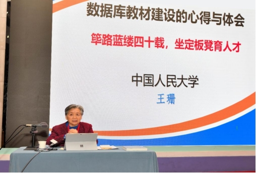 在主题报告环节,中国人民大学王珊教授以“数据库教材建设的心得与体会”为题做了大会报告。报告分享了数据库教程编写心得体悟,回顾了国产数据库的筚路蓝缕。她表示,教程和课程是学生最直接的学习活动,它直接和长远地影响学生的知识,能力和素质,希望教师善于利用教材、用好教材,不断丰富教程资源。