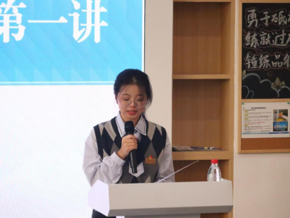 “青马工程”班学员、2023级计算机科学与技术(师范)专业王一粟同学代表新学员发言。她呼吁学员们从坚定理想信念、践行使命担当、勇当奋斗先锋三个方面深学笃行,筑牢信仰之基,号召大家努力成长为有志气、有骨气、有底气的新时代青年马克思主义者。