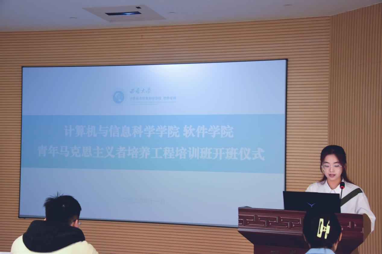 “青马工程”第一期学员,2021级网络工程专业李婷婷作经验分享,她从“志”、“思”、“行”三方面分享自己作为首期院级“青马工程”的收获与成长。第二期“青马工程”学员、2022级计算机科学与技术(师范)专业“青马工程”成员吴军霖代表新学员发言。她呼吁学员们从坚定理想信念、践行使命担当、勇当奋斗先锋三个方面深学笃行,筑牢信仰之基,号召大家努力成长为有志气、有骨气、有底气的新时代青年马克思主义者。