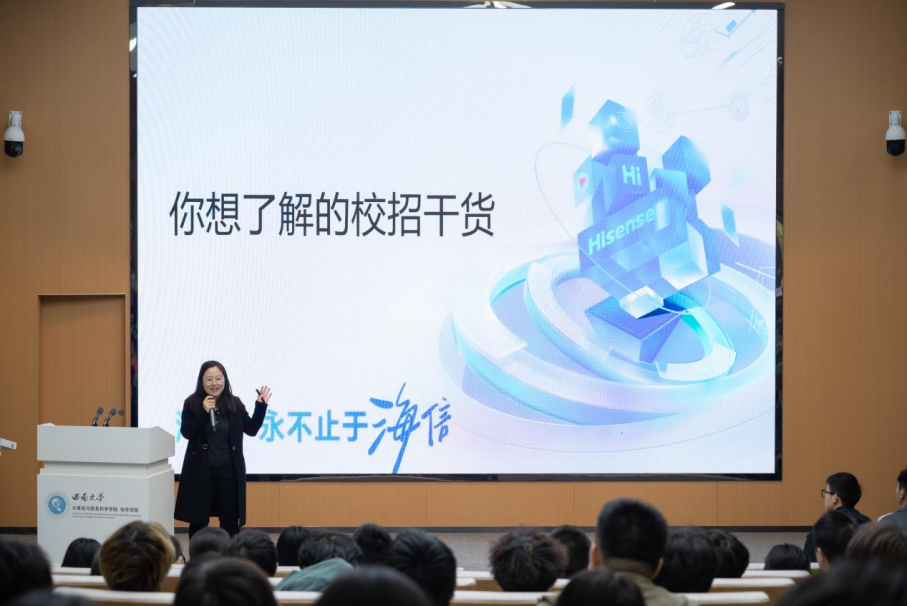 2024年IT文化节启动仪式暨“引航U声|科技创新企业海信HR面对面”专题讲座在25教1楼报告厅隆重举行。海信集团资深人力资源总监于美洁女士带来“你想了解的校招干货”主题讲座为本次“IT文化节”拉开帷幕。此次专题讲座不仅加深了同学们对未来就业形势和求职技巧的全面了解,也进一步激发了同学们提升自身竞争力、积极规划职业发展的热情和决心。