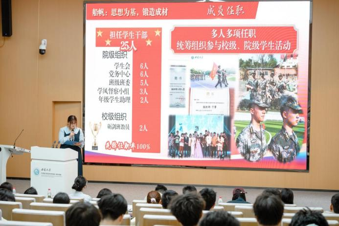 答辩现场展风采,青春答卷显担当。经过前期材料审核,各团支部积极展示自身成果,参与现场答辩,争当五四红旗团支部。展示过程中,各支部通过PPT、短视频、现场演讲等形式,从“思想引领、组织建设、学风建设、社会实践、特色创新”等多个维度生动展现了他们在过去一年中的工作亮点和成就展开汇报。