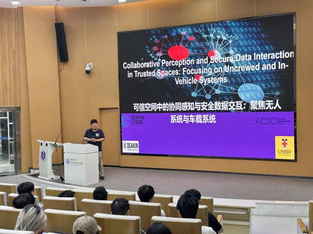 邀请澳大利亚迪肯大学专家团队举办了一场以“智能无人机、车路协同与区块链隐私保护”为主题的学术讲座。讲座围绕智能无人机服务、可信空间中的协同感知与安全数据交互以及区块链技术中的隐私保护等主题展开,吸引了众多师生参与。
