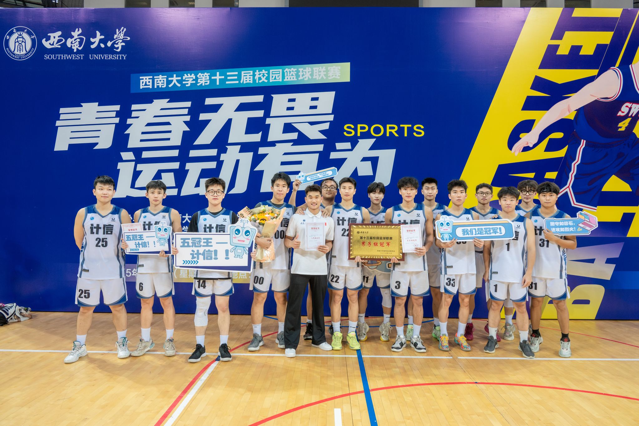党委书记孙楚航、副书记王晖、副院长李娅、全体辅导员老师以及200余名同学们组成的“计信啦啦队”举起KT板,拼出“5TH CHAMPION”的图案。这一刻,篮球与计信交织,汗水与智慧共鸣,av在线