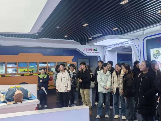 抵达企业后,同学们依次开展参观学习。首先,在安全教育基地,大家通过观看宣传片、参与知识竞赛、体验酒驾模拟等方式,深入理解企业“尊重生命,驾驶幸福”的安全理念。