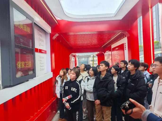 随后,同学们步入红色文化走廊,在“永远跟党走”等展区聆听企业党建与发展历程,感受“企业有信仰,发展有力量”的文化内核。在企业展示区,同学们在讲解员带领下参观企业发展过程中具有代表性的专利和技术产品,领会顺多利“把简单做到极致”的工匠精神。
