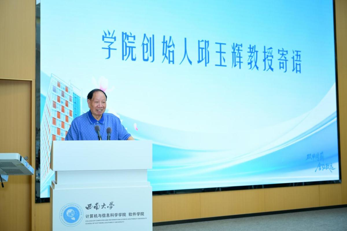 肇始初期克服重重困难坚持办学的艰辛历程。随后,他谈到设立“玉辉奖学金”的初衷,表达了他对后辈学子的殷切期望,希望广大校友能为那些勤奋刻苦、勇于创新的年轻人提供支持与鼓励,帮助他们更好地追逐梦想。最后,他鼓励新一代计信人要紧跟时代步伐,既要勇于创新,也要保持理性思考,在各自的领域奋发有为,为母校争光,为av在线