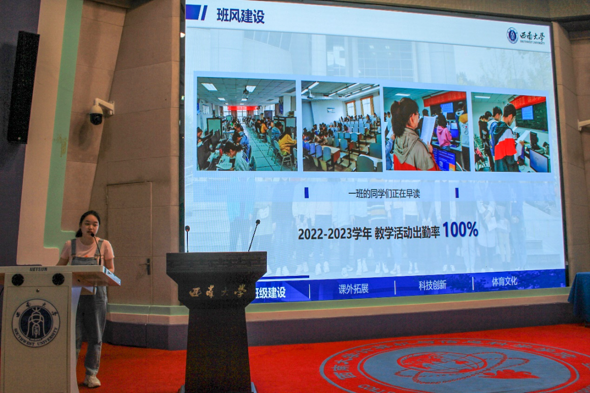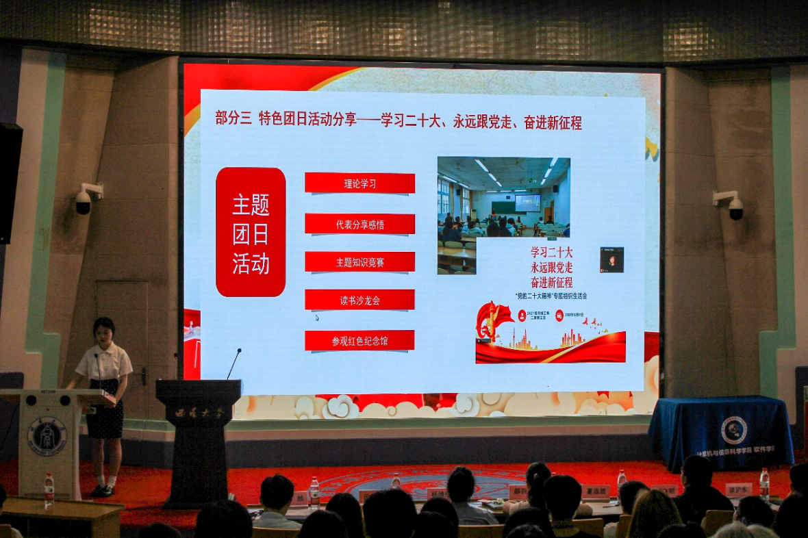 在展示过程中,各团支部优异的成绩、卓越的风采、丰富的团建活动都让人眼前一亮。许多团支部代表都展现了支部在学风建设、组织建设等方面的特色做法,并对未来团支部的建设进行了规划,充分体现了所在支部的良好风貌和团结协作的氛围。台上的各团支部代表同学激扬青春,台下的评委嘉宾和参会同学们认真聆听,现场氛围十分热烈。