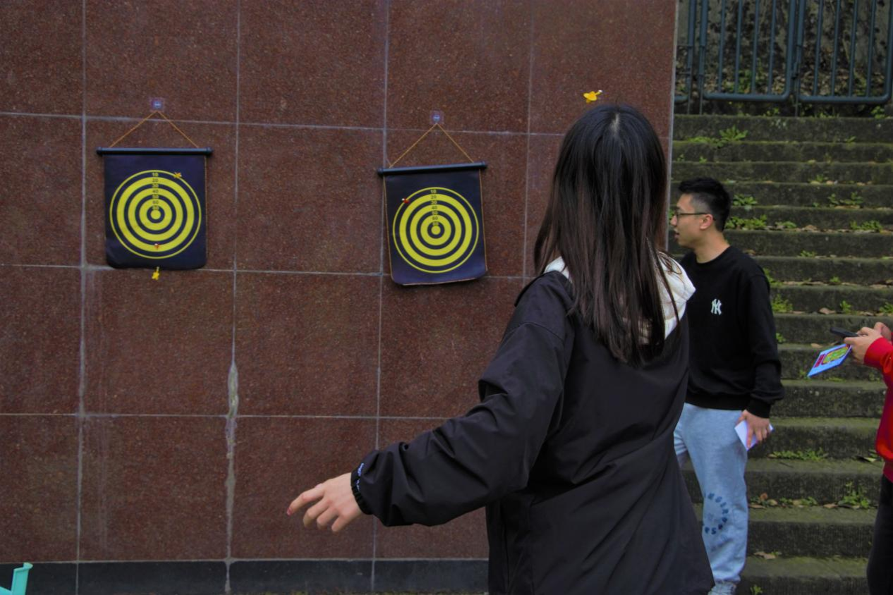 趣味游戏形式丰富多彩,众多项目吸引着同学们的目光,大家份份跃跃欲试,全身心投入活动。“毛毛虫竞速”跑道上不断传来欢声笑语,“乒乓球接力”、“羽毛球发球进框”场上配合默契,同学们还在“投飞镖”中感受百发百中的喜悦、在“无敌风火轮”、“六人七足”中你追我赶、在“套圈圈”中收获奖品和快乐。