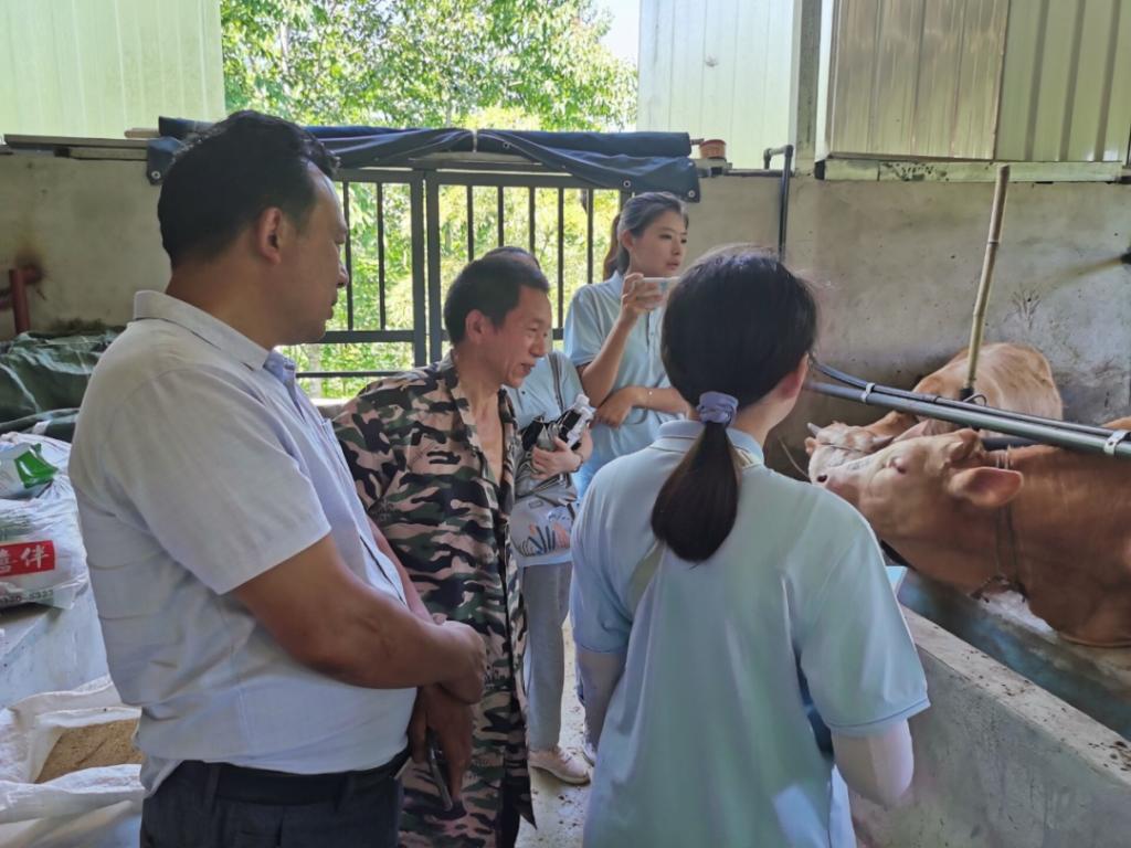 (义和村罗运桓支书带着团队成员参观养牛基地)
