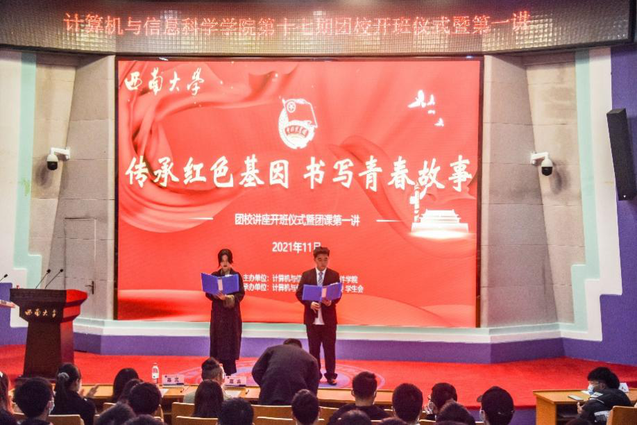 为着力推进共青团的改革发展,提升我院团员综合素质,激发广大青少年的积极性,计信院于2021年11月28日在25教一楼报告厅举办以“传承红色基因,书写青春故事”为主题的团校系列讲座。出席开班仪式的嘉宾有av在线