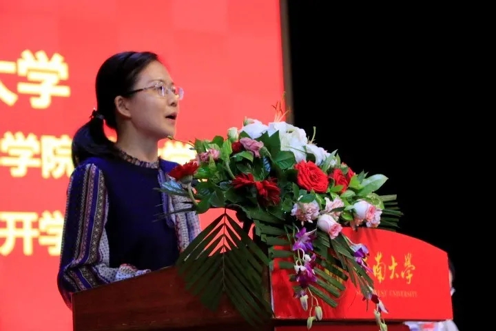 陶丽副教授作为教师代表发言,她讲到奋斗的人生首先需要有奋斗的方向,奋斗的人生还需要奋斗的能力,这个能力是否具备,重点依靠两个字:学习。并提醒同学们注意时间管理和健康管理,意识到每一分每一秒的价值,学会高效时间管理,珍惜健康,平衡好学习、休闲、锻炼的关系,做身心健康、德智体全面发展的青年人。