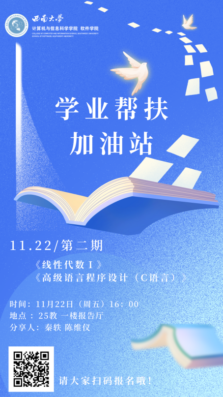 2024年11月22日,2024秋季学期第二期“学业帮扶加油站”在25教一楼报告厅顺利开展。本期活动针对《线性代数I》和《高等语言程序设计(C语言)》两门课程进行学习内容分享与重点知识讲解。助力av在线