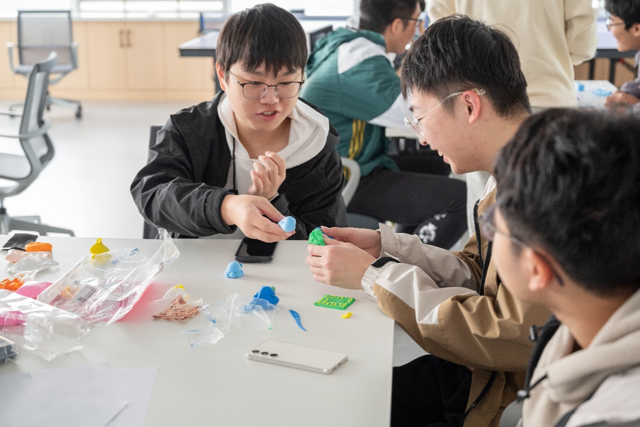 接着,冯夏老师以一种极具创意的方式引导学生们开启自我认知之旅。在老师轻柔话语的引导下,学生闭上眼睛,想象自己置身于宁静的湖旁,湖水如镜,倒映出自己的模样,让同学们在脑海中勾勒出自己的形象。随后,学生们拿起粘土和蜡笔水彩,将心中的自己通过绘画或泥塑的形式呈现出来。在冯夏老师徐徐的描述与引导下,同学们沉心与自己对话,精心探索着自己的每一个特点。