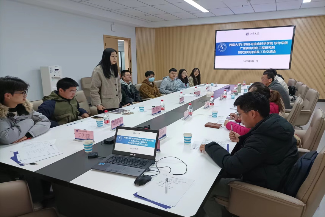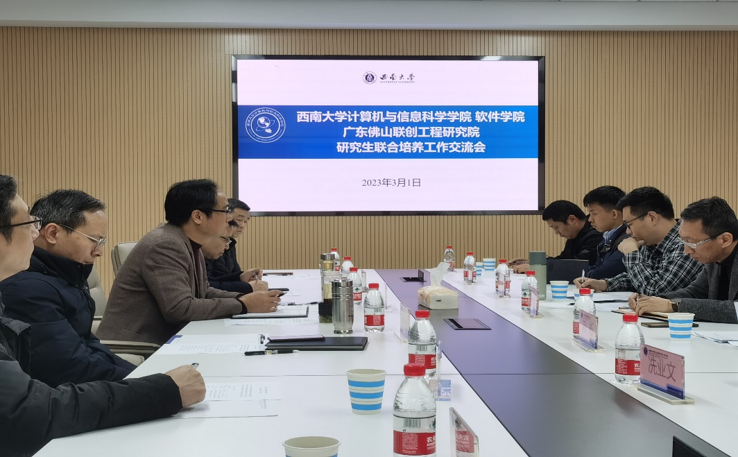 与广东佛山联创工程研究院召开了研究生联合培养工作交流会。参加本次会议的有院长肖国强,分管研究生工作的副书记刘作勋,导师代表邓辉文教授、张凤翔教授、周彦晖、欧灵副教授及教学秘书;广东佛山联创工程研究院副院长任晓龙,教务长王洋,教务处处长刘彬,项目导师魏晓磊、林晓明,教务处企业工作组冼业文,高校工作组林强。