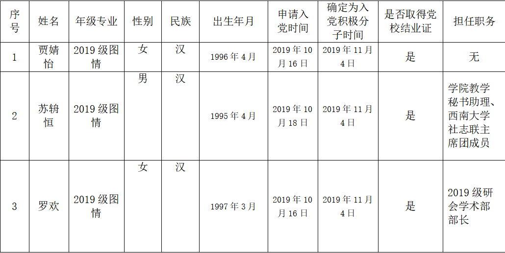 公示期满后将对发展对象进行政治审查,进一步考察培养。具体名单如下: