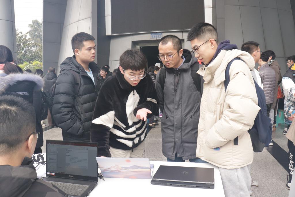 本科教学督导委员张虹、软件工程系主任赖祥伟以及软件工程系全体教师到现场参观作品展,与学生进行了互动交流,对此次路演活动表示了肯定并提出了宝贵建议。