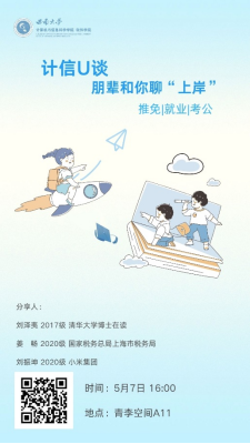 为培养同学们生涯规划意识,帮助同学们及早确定目标与落实行动,5月7日下午四点,av在线 在青李空间开展“计信U谈:朋辈与你聊上岸”主题分享活动。av在线 党委副书记王晖老师、团委书记杨靖欣老师、2017级校友刘泽夷同学、2020级自动化专业姜畅同学,2020级软件工程刘振坤同学以及30余名同学代表参加本次活动。活动初始,王...