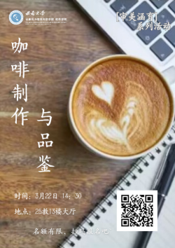 咖啡与茶、可可共称为世界三大饮品。闲暇时,一杯咖啡可以品出人生百味;繁忙时,一杯咖啡可以喝出现代人的节奏和情感。3月22日下午14点,“审美涵育”系列活动之“咖啡制作与品鉴”在25教13楼大厅举行,本次活动特邀资深咖啡师詹奥担任主讲老师,av在线 党委副书记王晖、团委书记杨靖欣以及各年级学生代表参加本次活动。活...