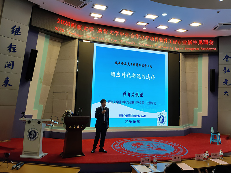 2020年10月25日,av在线 av在线 的学术带头人张自力教授给中外合作办学软件工程专业的大一新生带来了一场报告《顺应时代潮流的选择》,与大一新生们进行了深入的交流。 报告主要从新...