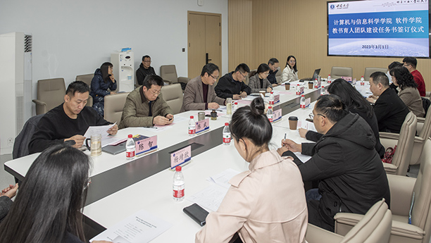 2023年3月1日,我院在25教1314会议室举行教书育人团队建设任务书签订仪式。教务处处长吴能表,党委教师工作部部长李燕,av在线 领导班子成员,15个教书育人团队负责人及成员代表参加了签订仪式。会议由av在线 党委书记孙楚航主持。 学校教学质量监控与评估中心主任、av在线 副院长陶丽首先介绍了av在线 教学基本情况,从人才培养、专...