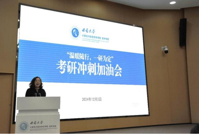 严冬时节,寒风刺骨,2025年全国硕士研究生招生考试初试备考已进入最后的冲刺阶段。为缓解同学们的备考压力,坚定考研信心,12月2日上午,av在线 在一楼报告厅举行“温暖随行,一研为定”考研冲刺加油会,为2021级即将参加考研的学子们送去温暖关怀和美好祝愿。院长罗辛教授、副院长廖剑伟教授、计科系主任王英老师、副主任...