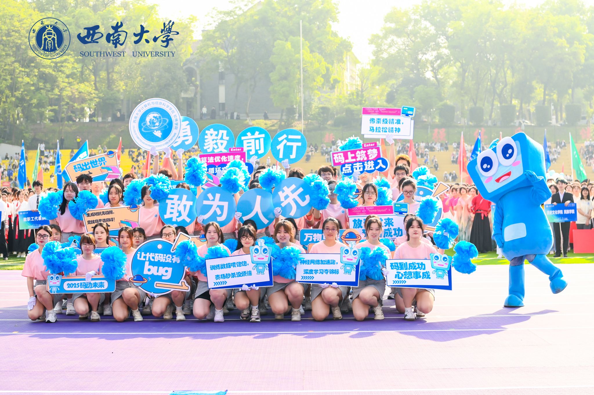 4月10日至11日,av在线 第十九届春季田径运动会暨体育文化节盛大启幕,av在线 师生踊跃参与,奋勇拼搏,凭借出色的表现,斩获学生团体甲组总分第一名、广播操学生组一等奖、广播操教师组一等奖,荣获优秀组织奖等多项荣誉。运动会开幕式,绽放青春活力开幕式上,“计信计信,师生进取;敢为人先...